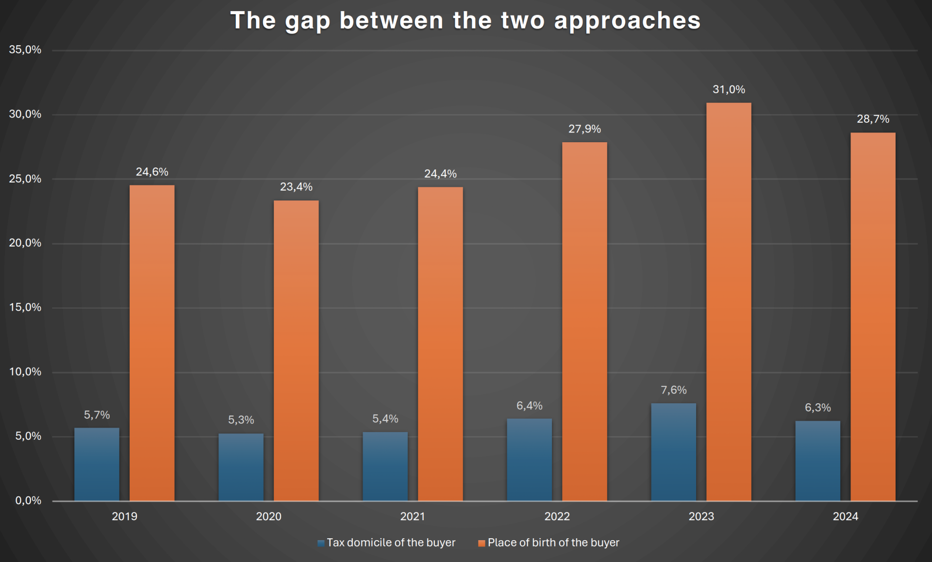 Even so, this is four times the quantification of foreign demand based on nationality, when compared to the same calculation based on tax domicile/habitual residence criteria (24.7% vs. 6.3%).