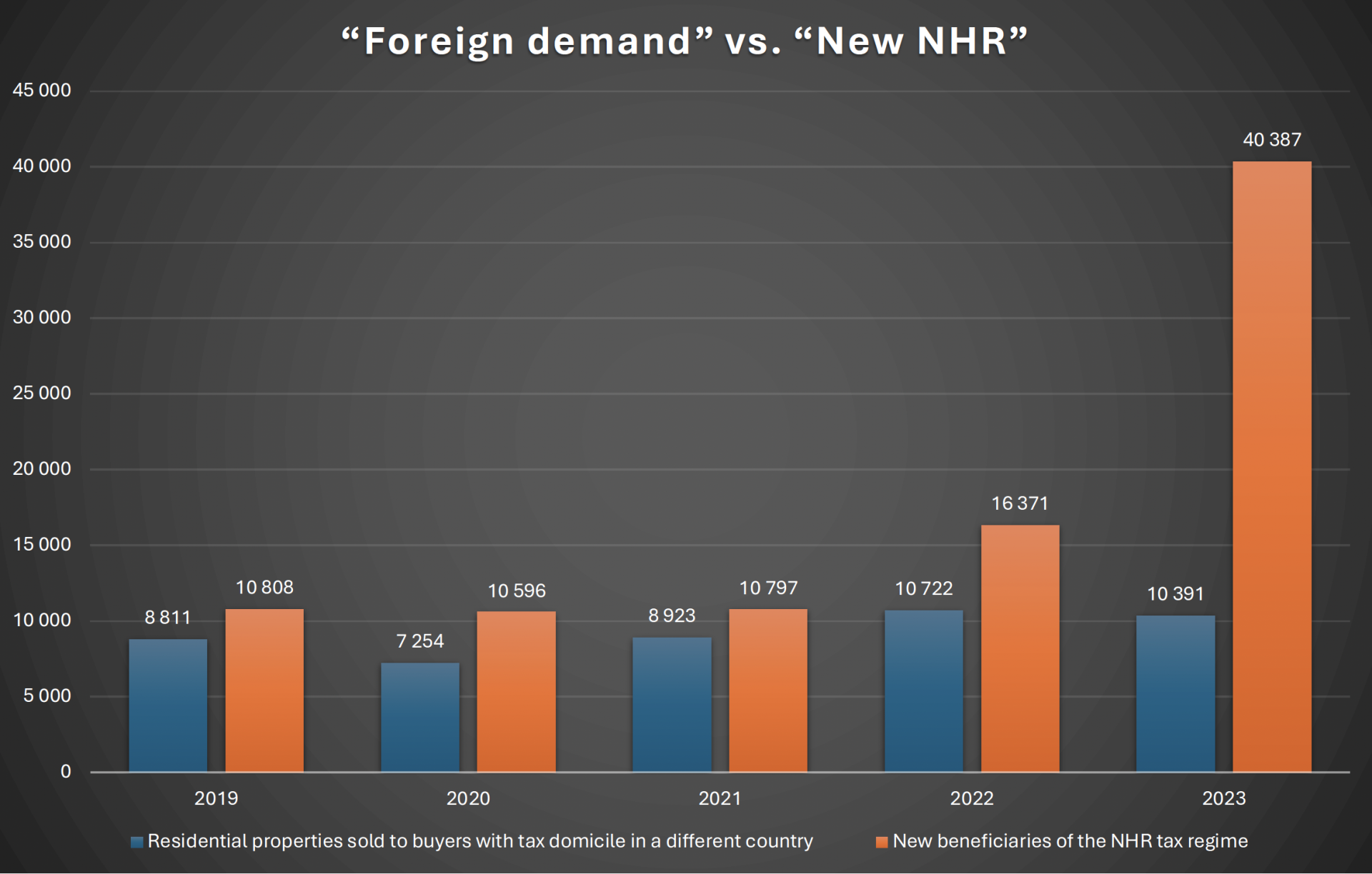 In 2023, the difference was especially stark: 10,391 property transactions by foreign resident buyers vs. 40,387 new NHRs.
